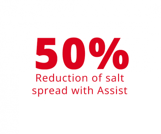 Tests have shown that the amount of salt spread is dramatically reduced during snowfall by up to nearly 50 %, with positive consequences for safety, cost control and environmental impact.