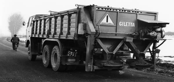 Founded in 1950, Giletta started its operations as a distributor of agricultural machinery. In the years immediately following, the company started as a production company of hay elevators, fertiliser spreaders, and manure spreaders. In 1966, according to a request of a private contractor that carrying out snow clearing operations on the provincial road, Giletta designed a sand and salt spreader. The spreader had a double feed chain, which was the technology used in the production of agricultural machines and had a capacity of 11 cubic metres, suitable for a 6x4 truck. At that time, the largest spreader in Europe was 6 cubic metres, and therefore the new machine represented a great novelty on the market for which the first highways, in order to reduce the number of vehicles, started to buy the new spreader. Thus began the first diversification, from a manufacturer of agricultural machinery to a manufacturer of winter maintenance equipment.