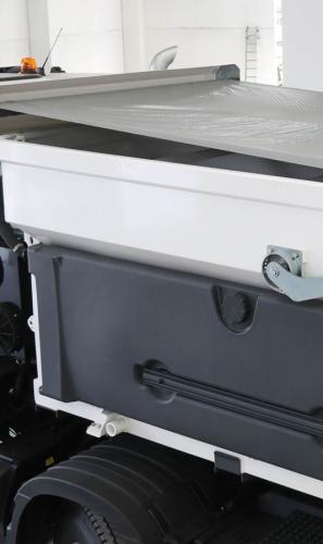 Located at the top of the Cosmix, the aggregate hopper stores the premixed sand, gravel, stone or other aggregates. It is split into two hoppers totalling 9m3.The hopper is made of high quality steel. This ensures it is sturdy and waterproof, and prevents the materials from sticking or leaving residue.