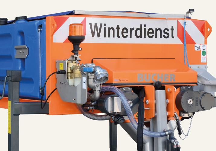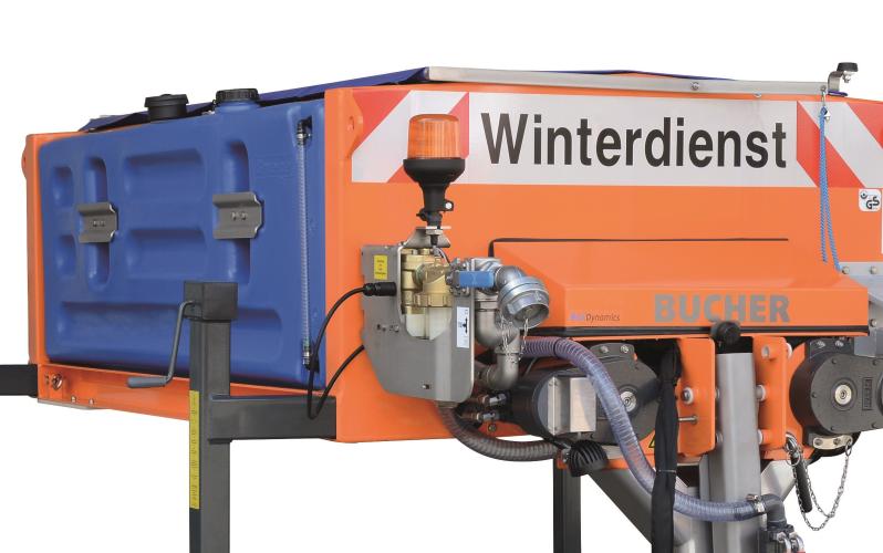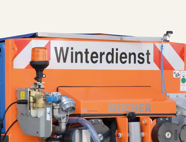 The vehicle-gritter combination is ideal for winter service on narrow track vehicles thanks to the low profile container design which results in a low center of gravity.